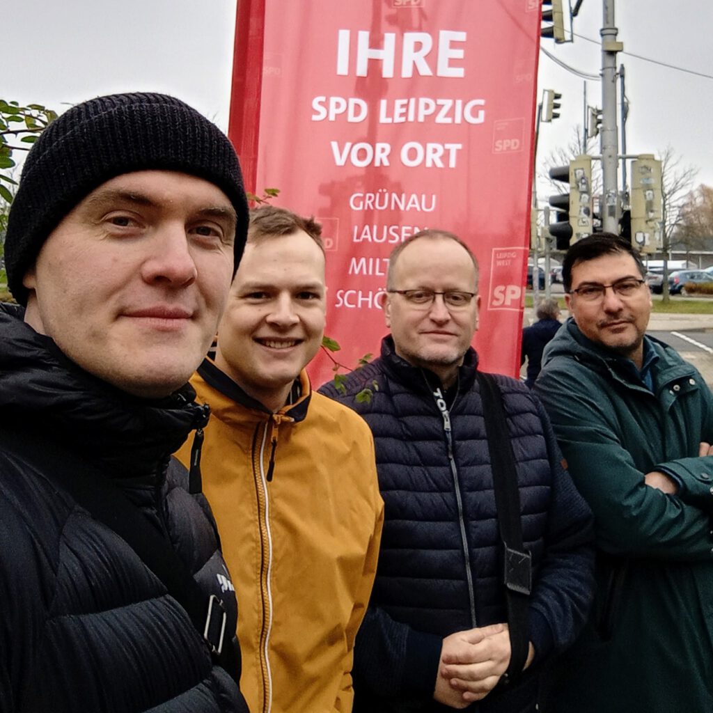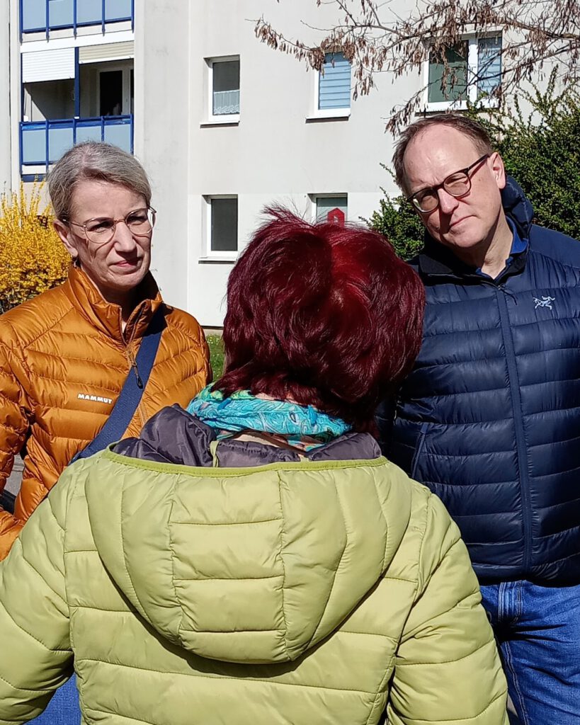 Unsere Stadtbezirksbeirätin, Ariane Zimmer, und unser Team freuten sich über die Verstärkung aus der Leipziger Stadtratsfraktion: Pia Heine und Andreas Geisler waren vor Ort. Alle drei sind in ihrer Freizeit im Ehrenamt für die Leipzigerinnen und Leipziger aktiv und versuchen nach Kräften, die Herausforderungen dieser Stadt gemeinsam mit anderen Parteien und Fraktionen zu bewältigen.