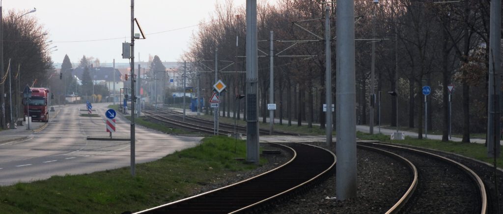 an der Straßenbahn-Haltestelle Grünauer Allee