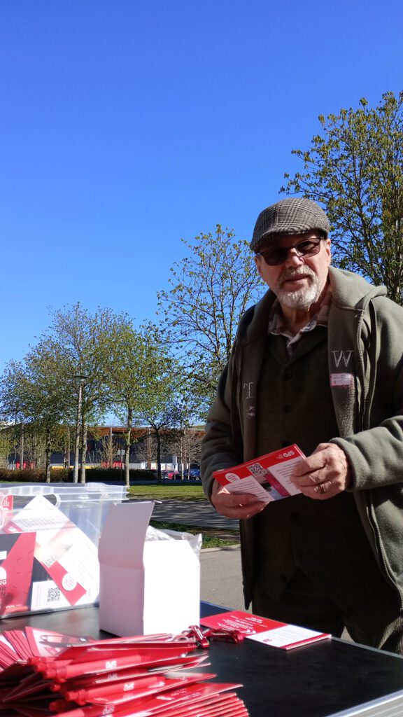 2025 ist das Jahr, in dem wir erstmals keinen eigenen Stand anlässlich des Feiertags 1. Mai in Grünau auf die Beine stellen konnten. Stattdessen engagierte man sich in der Innenstadt auf dem Marktplatz.