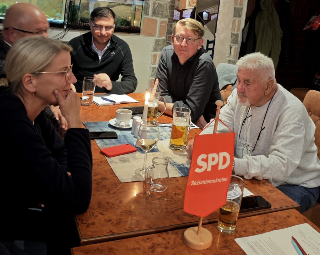 Deshalb hatten wir zu unserem SPD-Abend Ende September den Pandechaion-Herberge e.V. eingeladen. Dieser Verein betreibt in Grünau zwei Gemeinschaftsunterkünfte für Geflüchtete. Im Gespräch wurde uns erklärt, welche Herausforderungen für die Menschen bestehen, die zu uns kommen und welche Hürden für den Betreiber bestehen. Vor allem wachsende Bürokratie und sinkende finanzielle Mittel bereiten Schwierigkeiten. Die Zusammenarbeit mit Stadt klappt jedoch gut. Dem Gespräch lauschte auch Stadträtin Pia Heine, die in der SPD-Stadtratsfraktion für dieses Thema verantwortlich ist. Darüber hinaus teilte sie uns die neusten Infos aus dem Stadtrat mit.